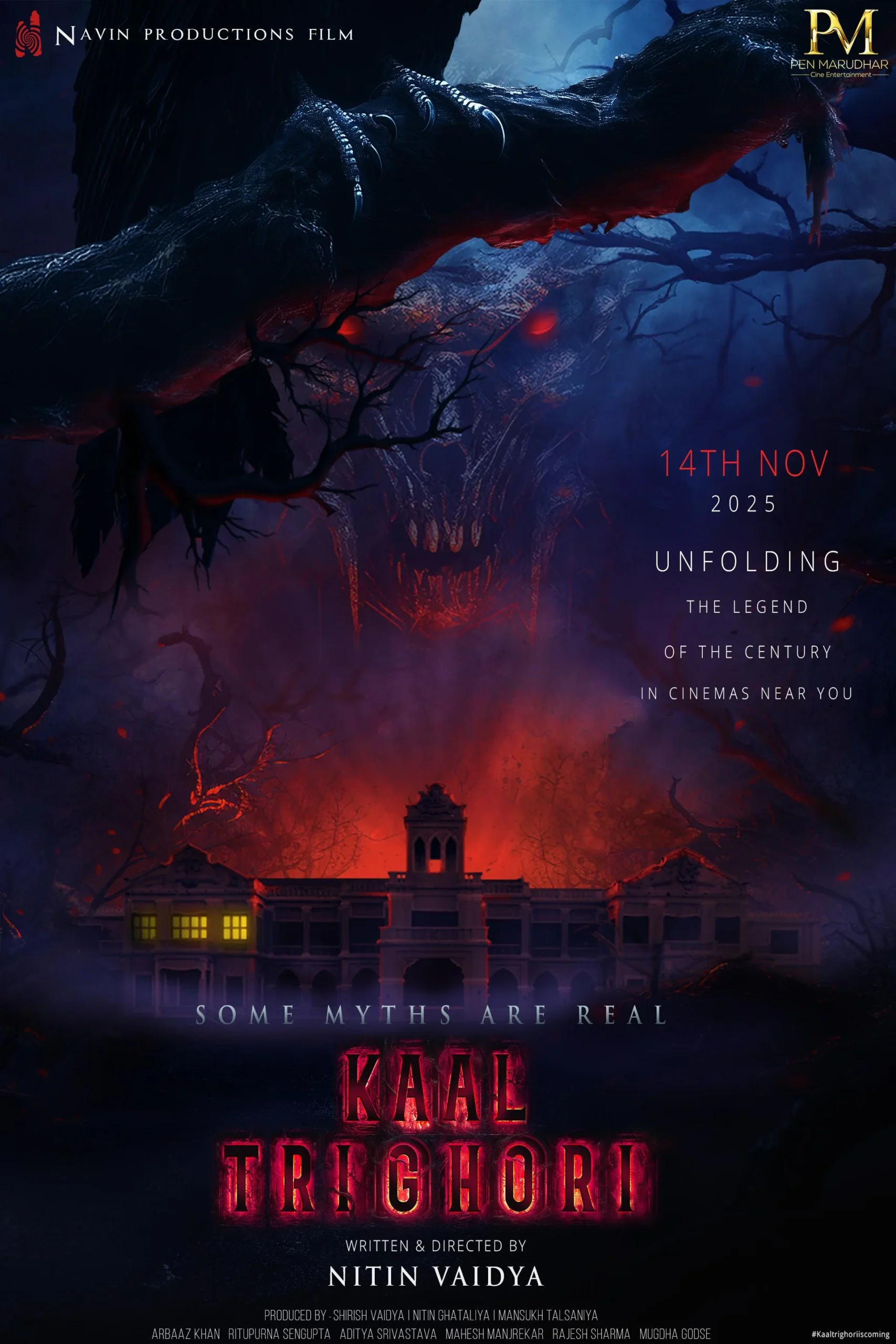 Kaal Trighori is a 2025 Indian Hindi-language Horror, Thriller Film. Kaal Trighori Movie Cast Arbaaz Khan, Rituparna Sengupta, Aditya Srivastava, Mahesh Manjrekar lead role and many others in supporting roles. The movie was written & directed by Nitin Vaidya and produced by Shirish Vaidya & Nitin Ghataliya under the banner of Navin Productions. Kaal Trighori movie release date on 14th November 2025.