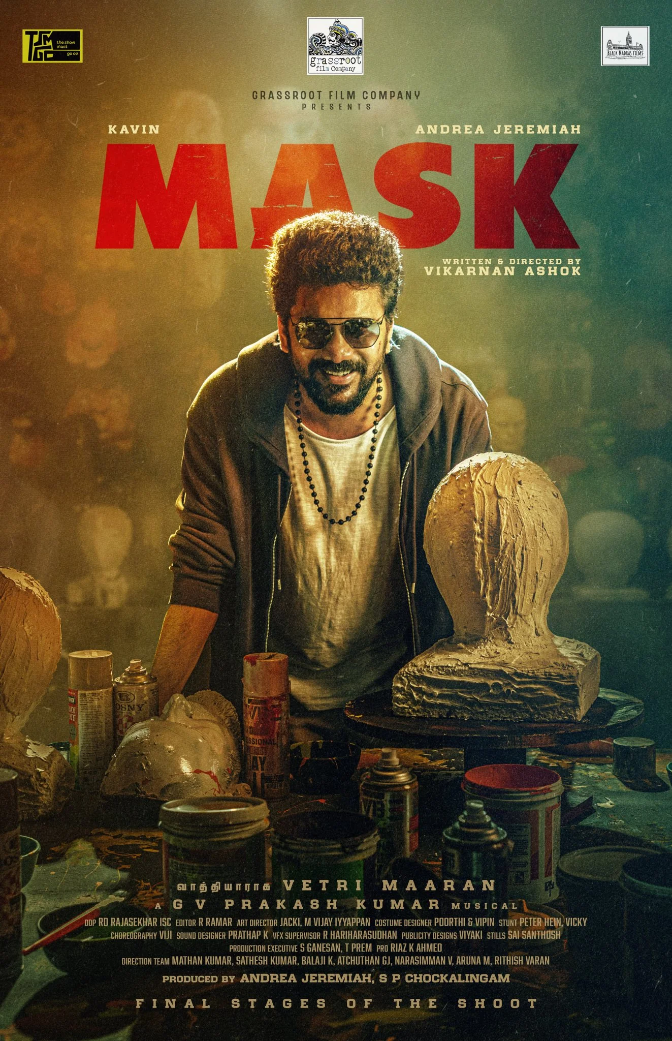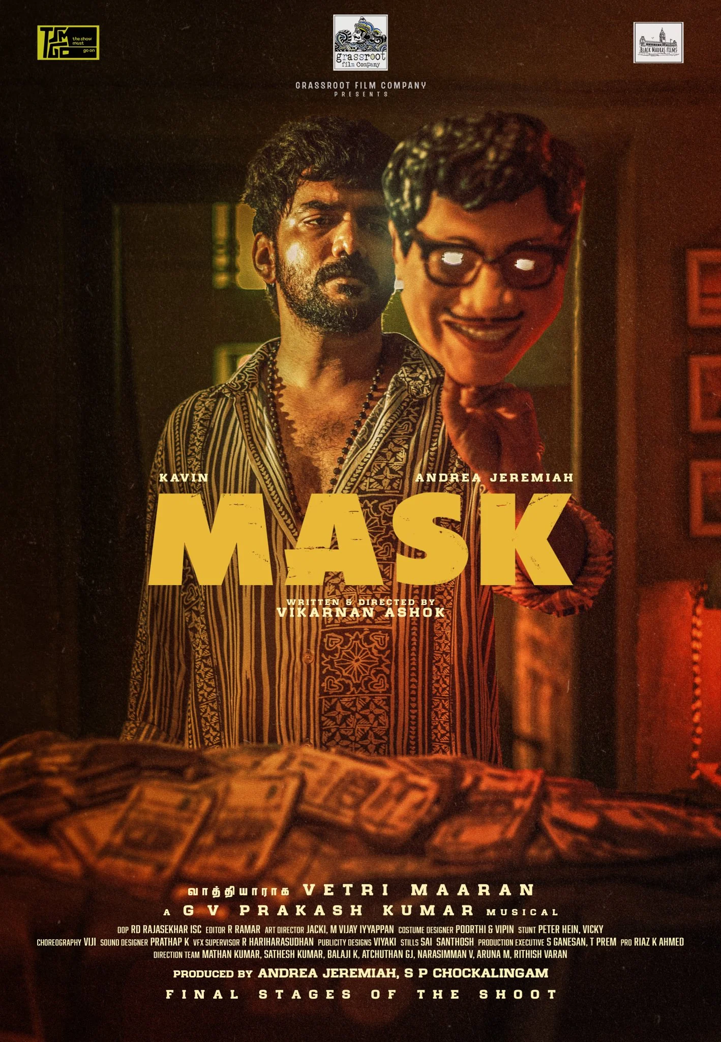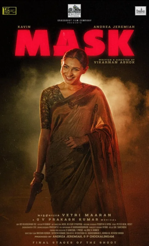 Mask is a 2025 Indian Tamil-language Comedy, Crime, Thriller Film. Mask Movie Cast Kavin, Andrea Jeremiah, Ruhani Sharma, Archana Chandhoke lead roles and many others supporting roles. The movie story was written & directed by Vikarnan Ashok and produced by Andrea Jeremiah under the banner of Grass Root Film Company & Black Madras Films. Mask movie is scheduled for a theatrical release date on 21st November 2025.